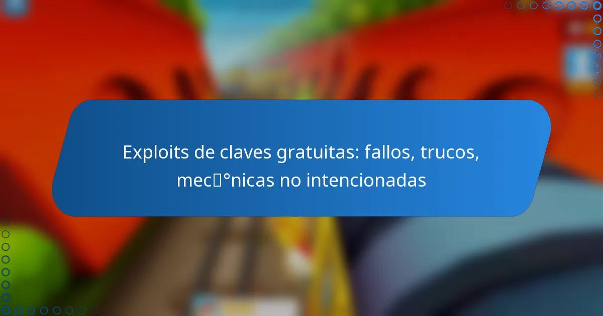 Los exploits de claves gratuitas en los videojuegos implican fallos o mecánicas no intencionadas que permiten a los jugadores adquirir recursos dentro del juego, como objetos o moneda, sin seguir las reglas estándar. Al aprovechar estos exploits, los jugadores pueden mejorar su experiencia de juego y desbloquear diversos contenidos sin inversión financiera, aunque esto puede alterar el equilibrio previsto del juego. Familiarizarse con estos trucos puede aumentar significativamente las posibilidades de obtener claves gratuitas de manera efectiva.